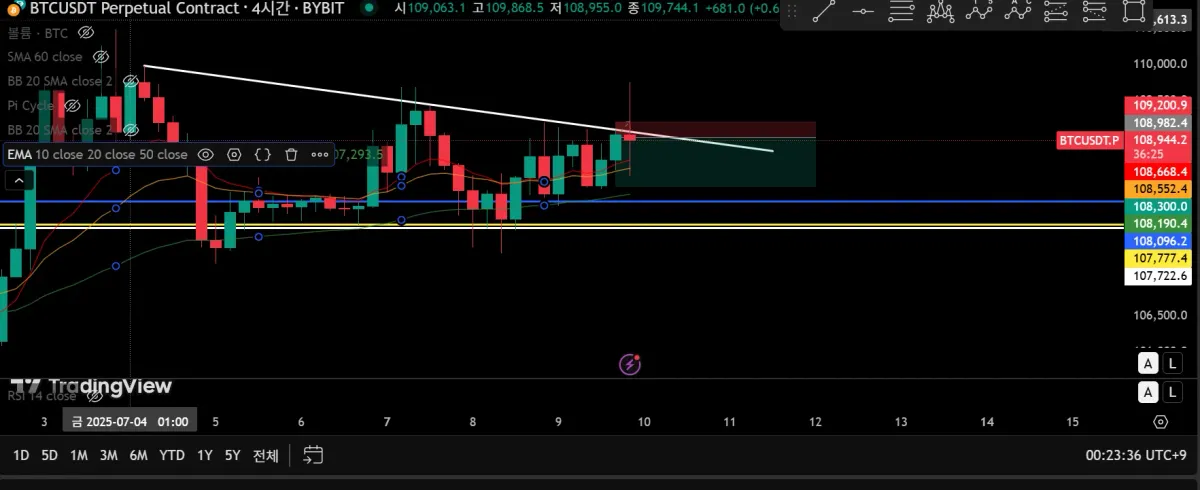 지금 차트를 다시보면 다시 가격이 내려 추세선으로 예상한 저항선보다 내려간 것으로 봤을 때 처음 예상했던 흐름으로 다시 흘러가는 것처럼 보인다.