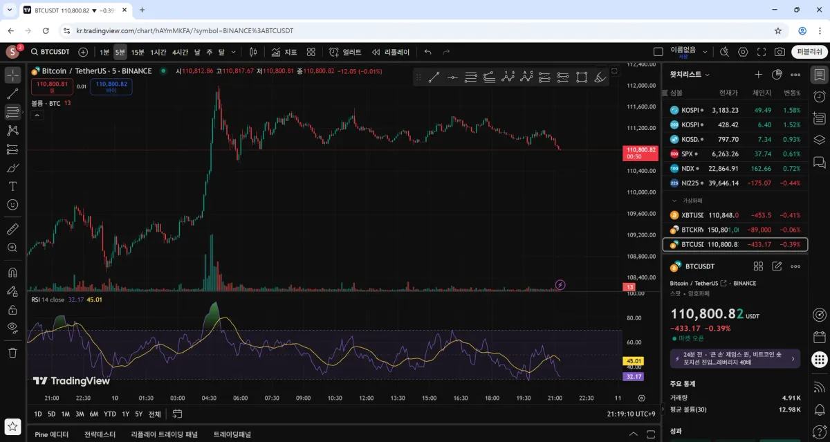 [30일 챌린지 34기 2주차] 트레이딩 뷰에 rsi 지표 추가