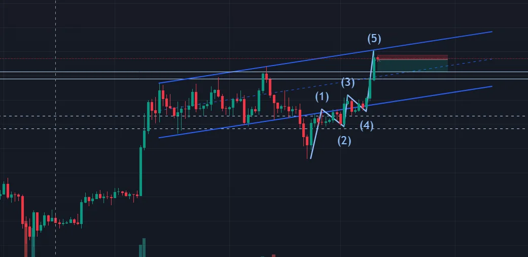 이더리움 날봉차트: 채널 생성이더리움 30분 차트: 엘리어트 5파 완성 + 채널 상단 터치 + rsi 하락 다이버전스