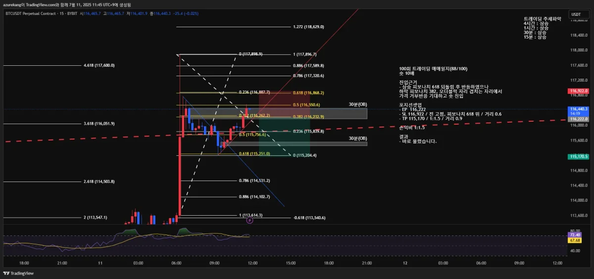 - SL 116,922 / 전 고점, 피보나치 618 위 / 거리 0.6
