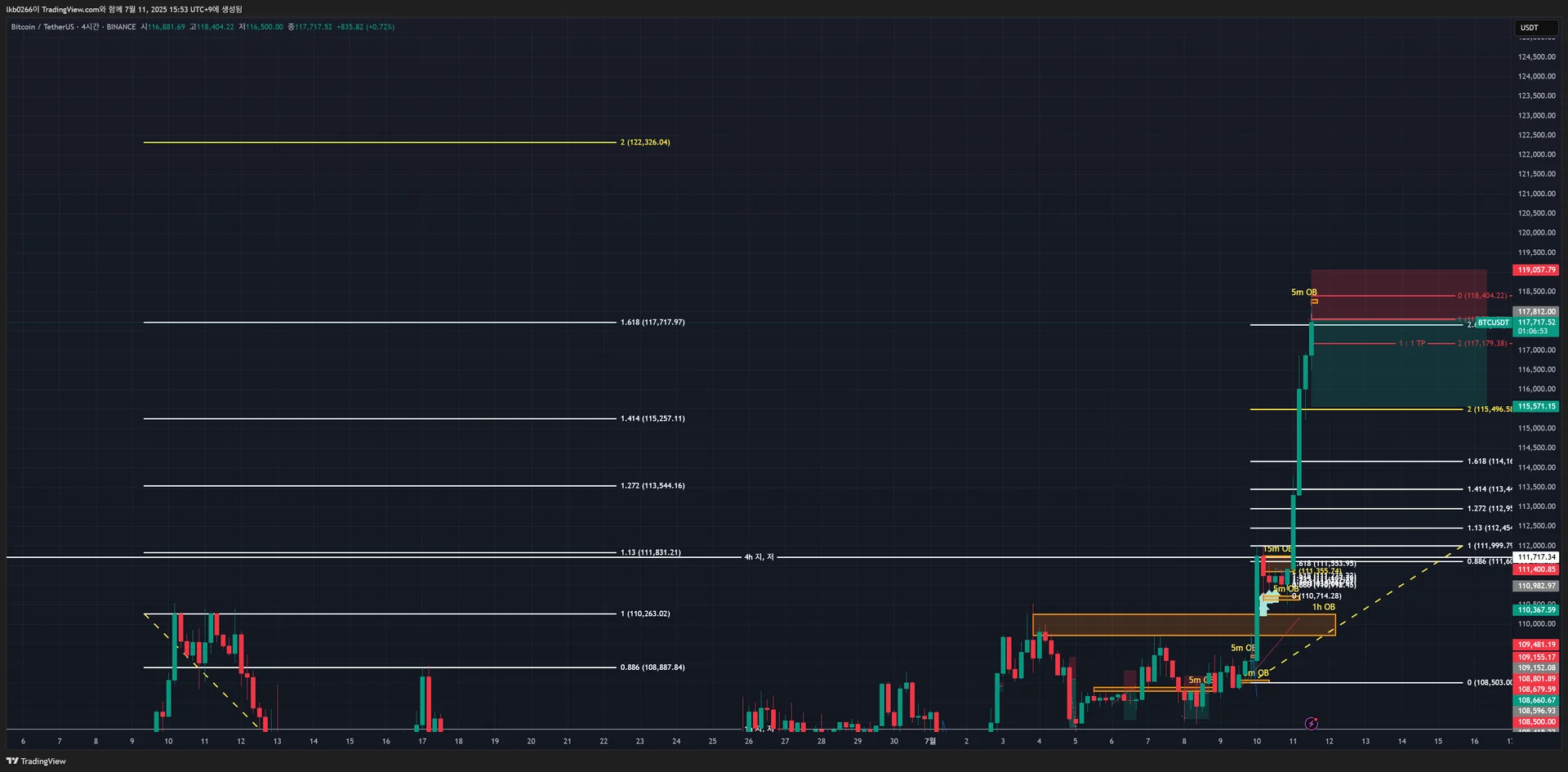 복기: 와 길고 기나긴 상승랠리 이후 조정을 주었네요.... 1% 손실 구간 안 잡았으면 어우 아찔했네요 쭉 내려주며 익절!