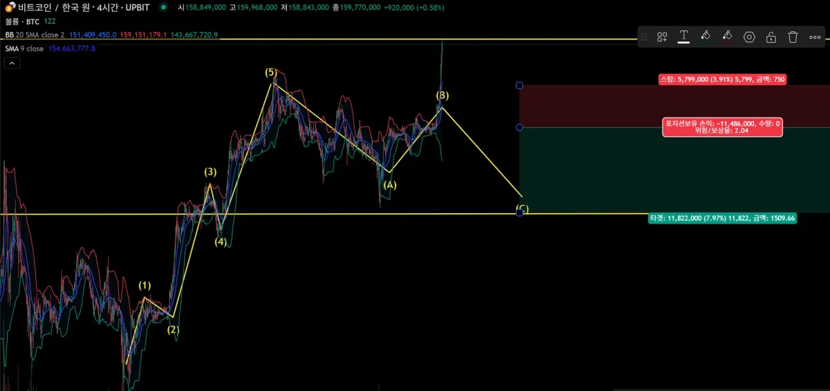 작도 시간 : 7월 10일 오후 9시 기준, 150,902,000원 단가로 10만원 진입 예정이였으나, 구매체결 실패