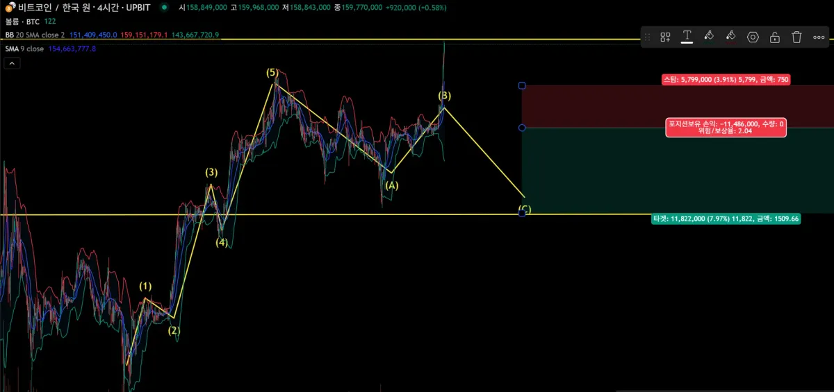 작도 시간 : 7월 10일 오후 9시 기준, 150,902,000원 단가로 10만원 진입 예정이였으나, 구매체결 실패