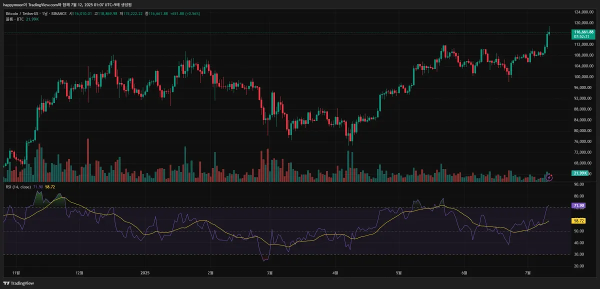 7일 챌린지[30일 챌린지 34기 2주차] BTCUSDT RSI 지표 추가