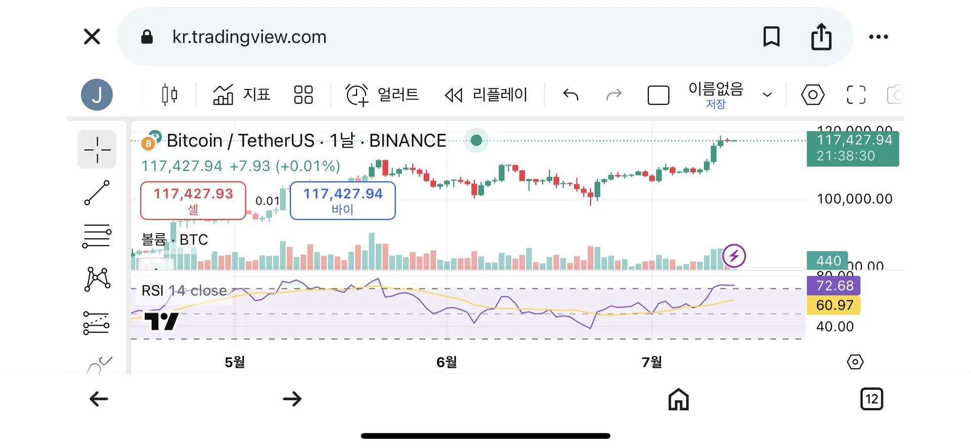 지금 과매수 구간이라서 빠르게 매도를 진행하는게 좋습니다