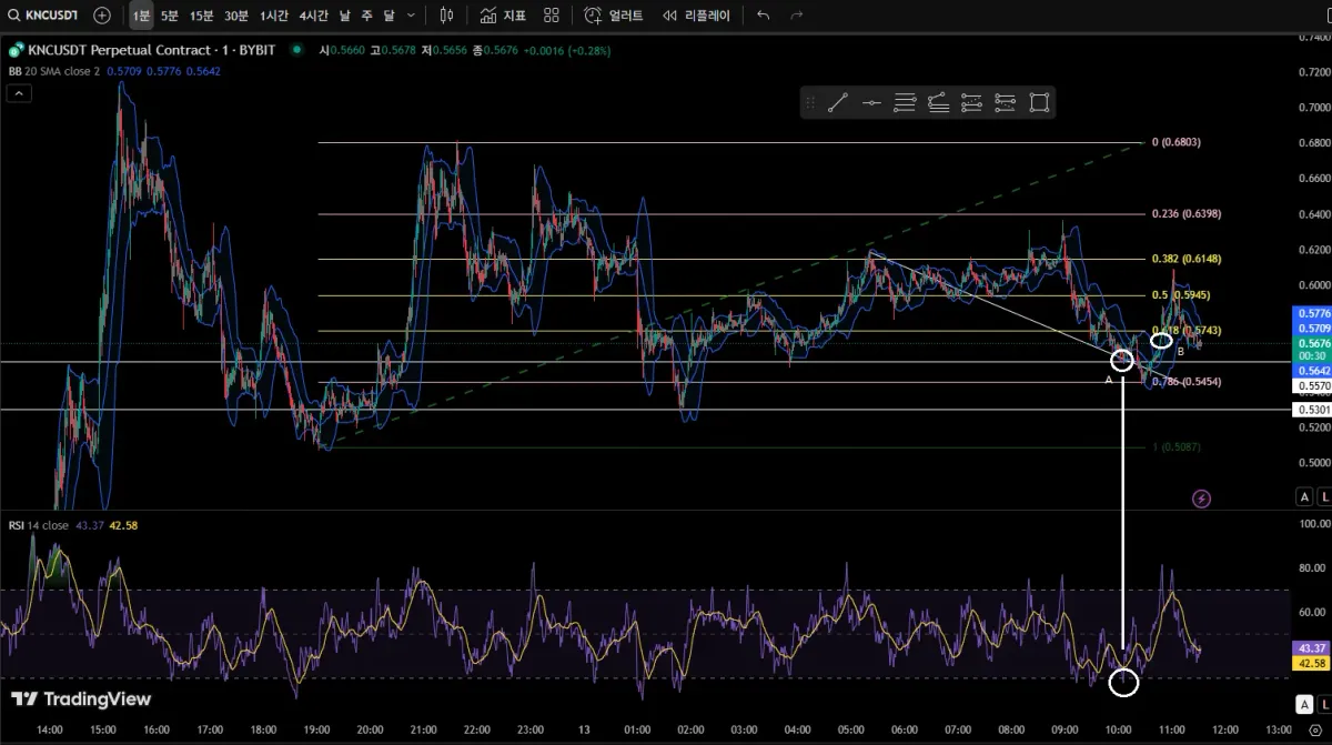 피보나치선 지지는 없었음.