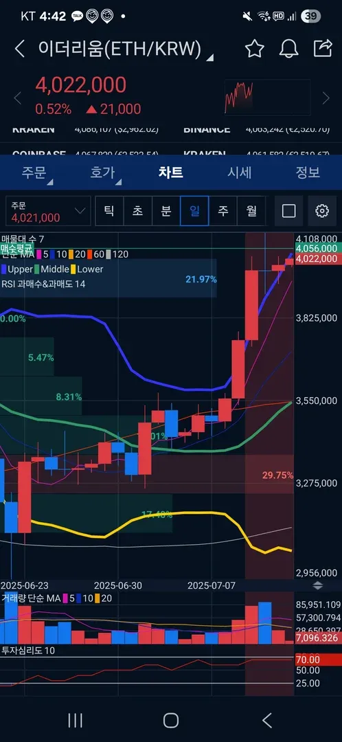 그리고 나간 멘탈에 차트를 손에서 놓지못하고 볼린저밴드 상단 올라가자 추격매수함 내마음 진정용이라고 합리화함