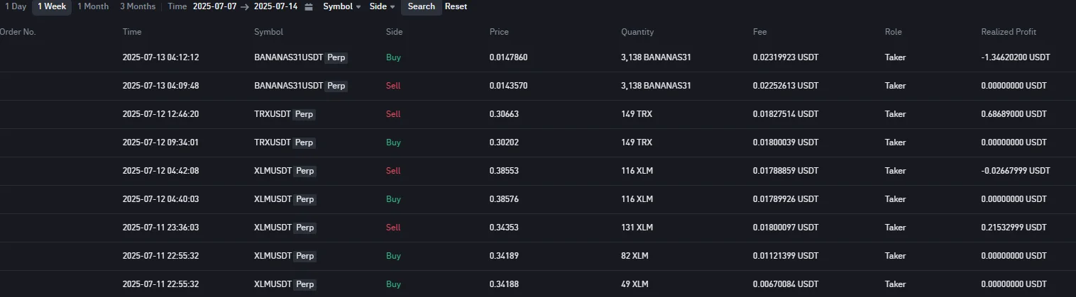 알트코인 테스트. 7시간 동안 1.6usdt 벌었다가 코드 좀 만졌더니 1.3usdt 잃음....