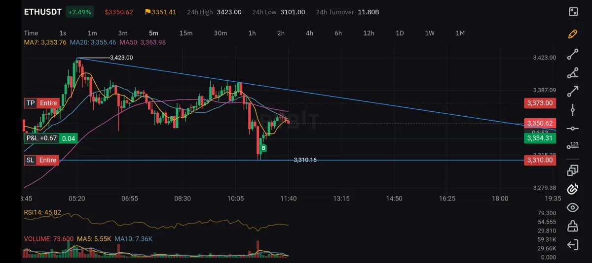 - 강한 음봉으로 조정을 줬기에 알트가 불장인거로 보아 확실한 반등이 나올거라 판단해 고배율 진입