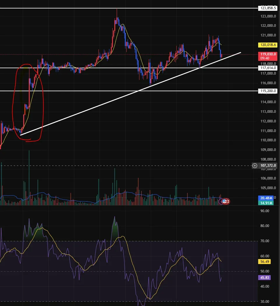 115k 지지선: 이전 강한 상승 이후 저점을 근거로 잡았습니다.