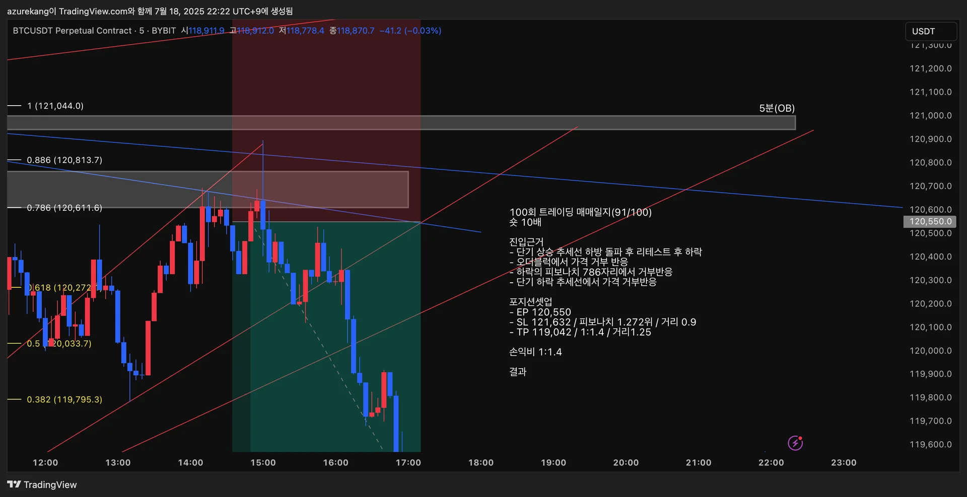 - SL 121,632 / 피보나치 1.272위 / 거리 0.9