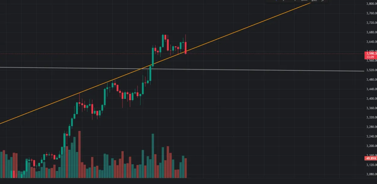 이더리움 1시간봉 기준으로 추세선을 완성봉 이탈한다면 숏진입을 해보려고합니다.