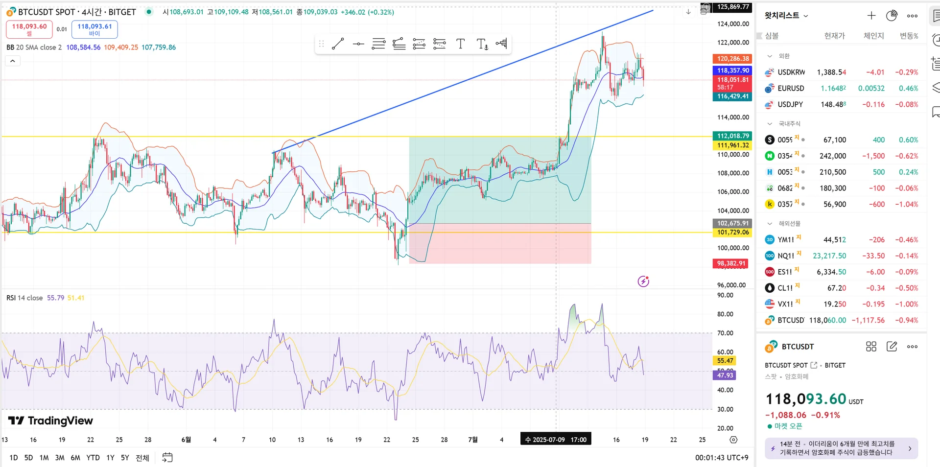 6월 말쯤에 강의 들으면서 캡쳐한 매수 포지션쯤에서 소액으로 사서 연습했었습니다. 100% 기술적 분석은 아니였지만 볼린저밴드, 거래량 RSI 정도만 얼추 확인하고 매수 매도 했던것 같네요.. 아직 많이 모자라지만 강의 여러 번 반복해서 듣고 더 노력해야겠습니다 ㅎㅎ