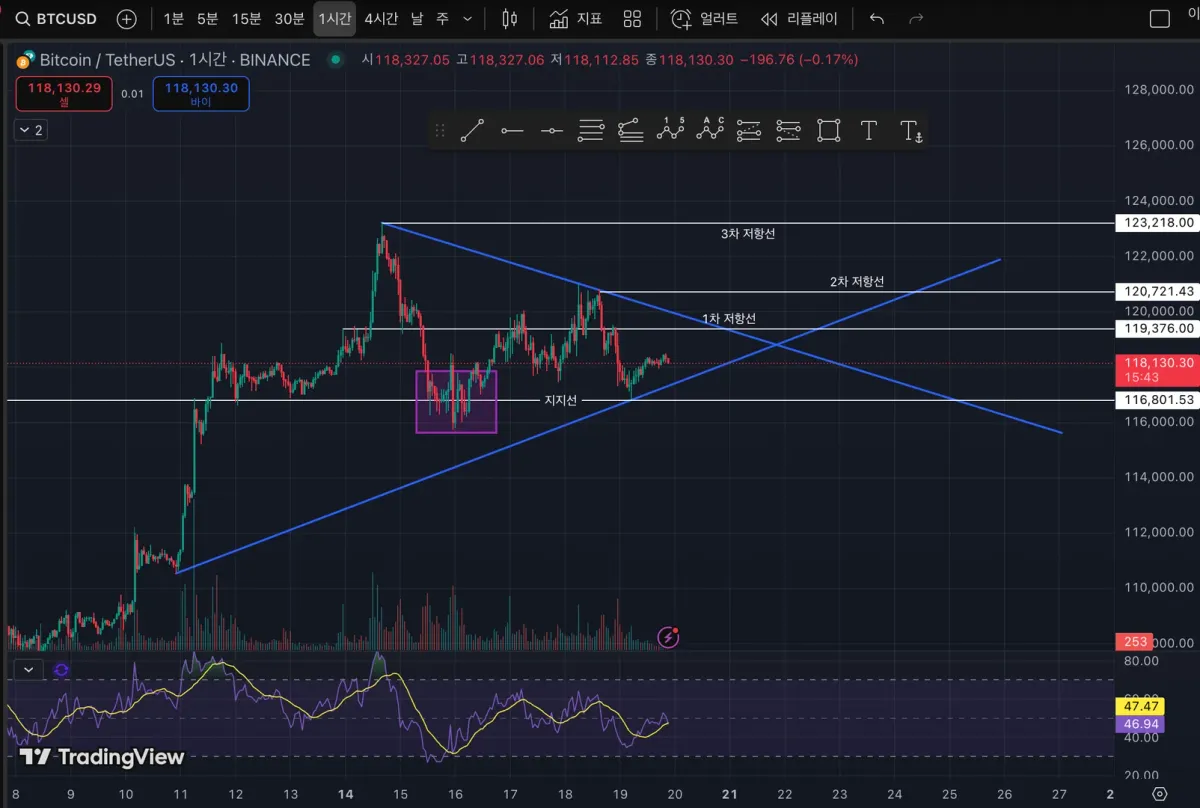 저는 1시간 차트로 작도를 했습니다.