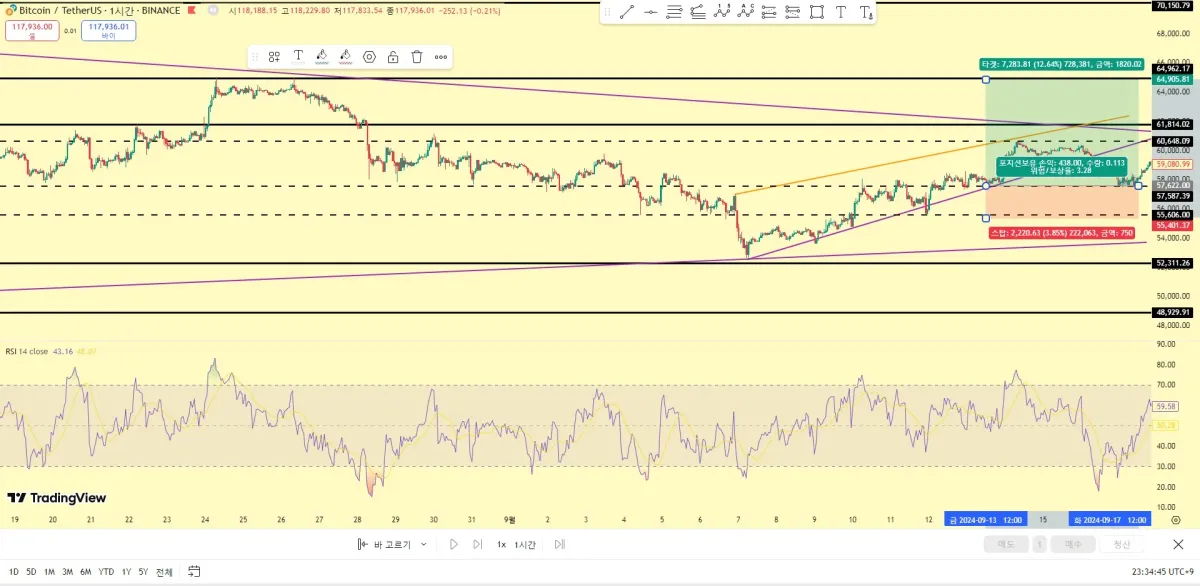 2023-10-14~2024-09-17 기간의 BTCUSDT 차트분석