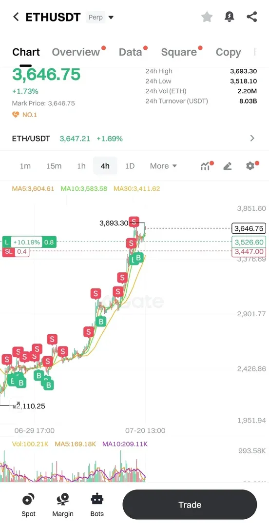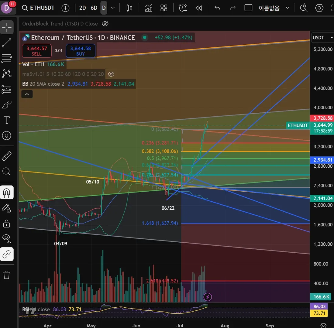 이더리움 장기채널 하프부근에서 상단 채널까지를 익절, 하프부근에서 하방으로 분출나온 일봉 저가 기준을 S/L로 설정하였습니다.
