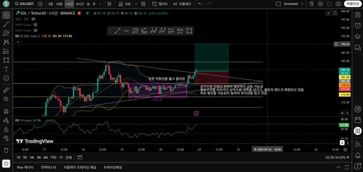 아직 수익을 보지 않은 현재진행형입니다. 진입근거를 아래처럼 세우고 진입하였습니다.