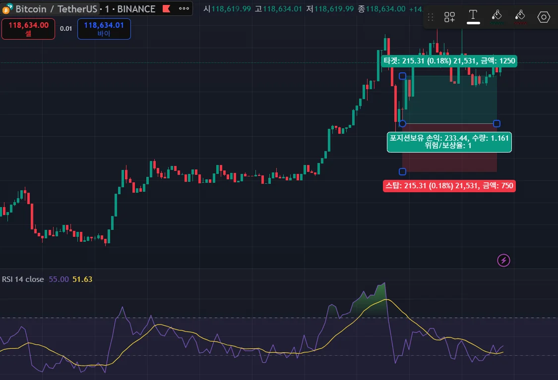 반등이 에상되어 진입하는 포지션을 잡았습니다.