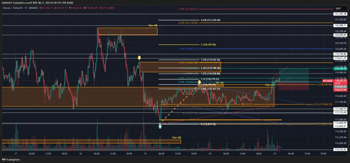 자 오랜만에 돌아왔습니다. 저기 화살표 보이시죠? 15m OB에서 재밌게 놀았고 변동성이 없던 주말 장 이후 비트코인 차트 예측 시작합니다.