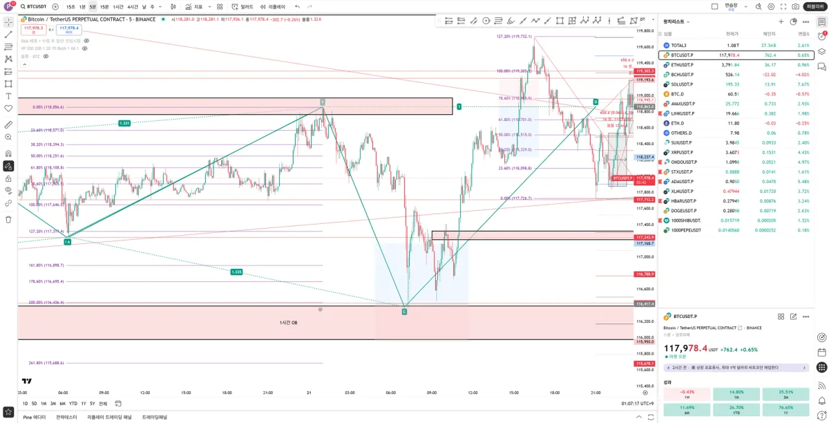 2) OB가 있었지만, ABCD 피보나치 확장 1:1 구간이 조금 더 위라서 살짝 위에서 진입