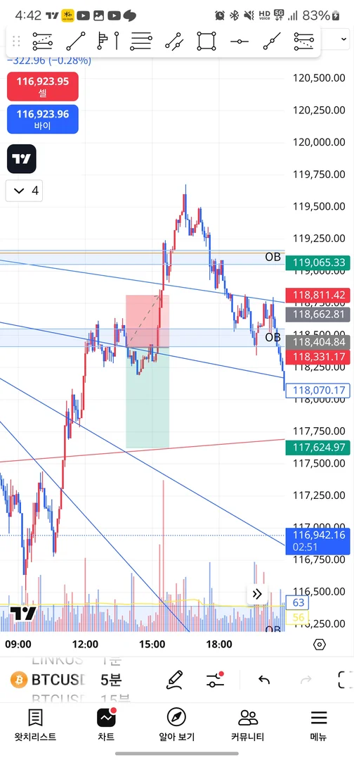1) 이전 파동에서 오더블럭 저항 이후 다시 저항