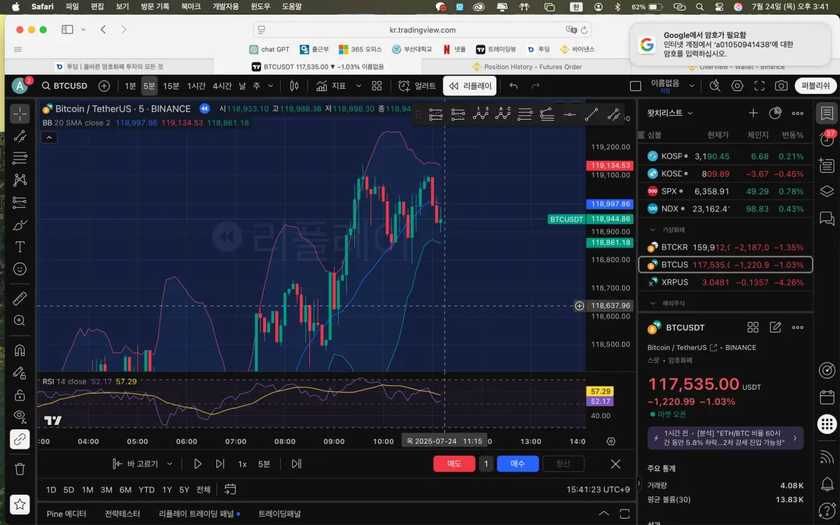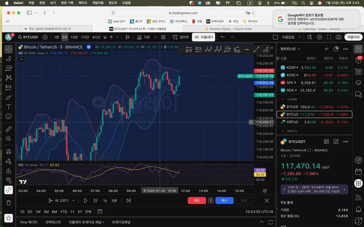 - 멍때리다가 볼린저밴드 하단 터치한 걸 못 본채로 상승