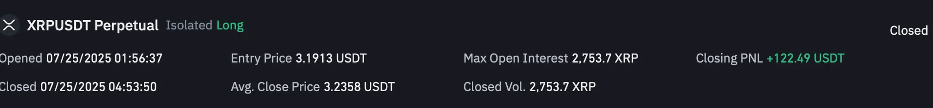 해당 지점에서 익절을 했고,+122.49$ / 수수료 : 8700 * 0.04% = 3.48$