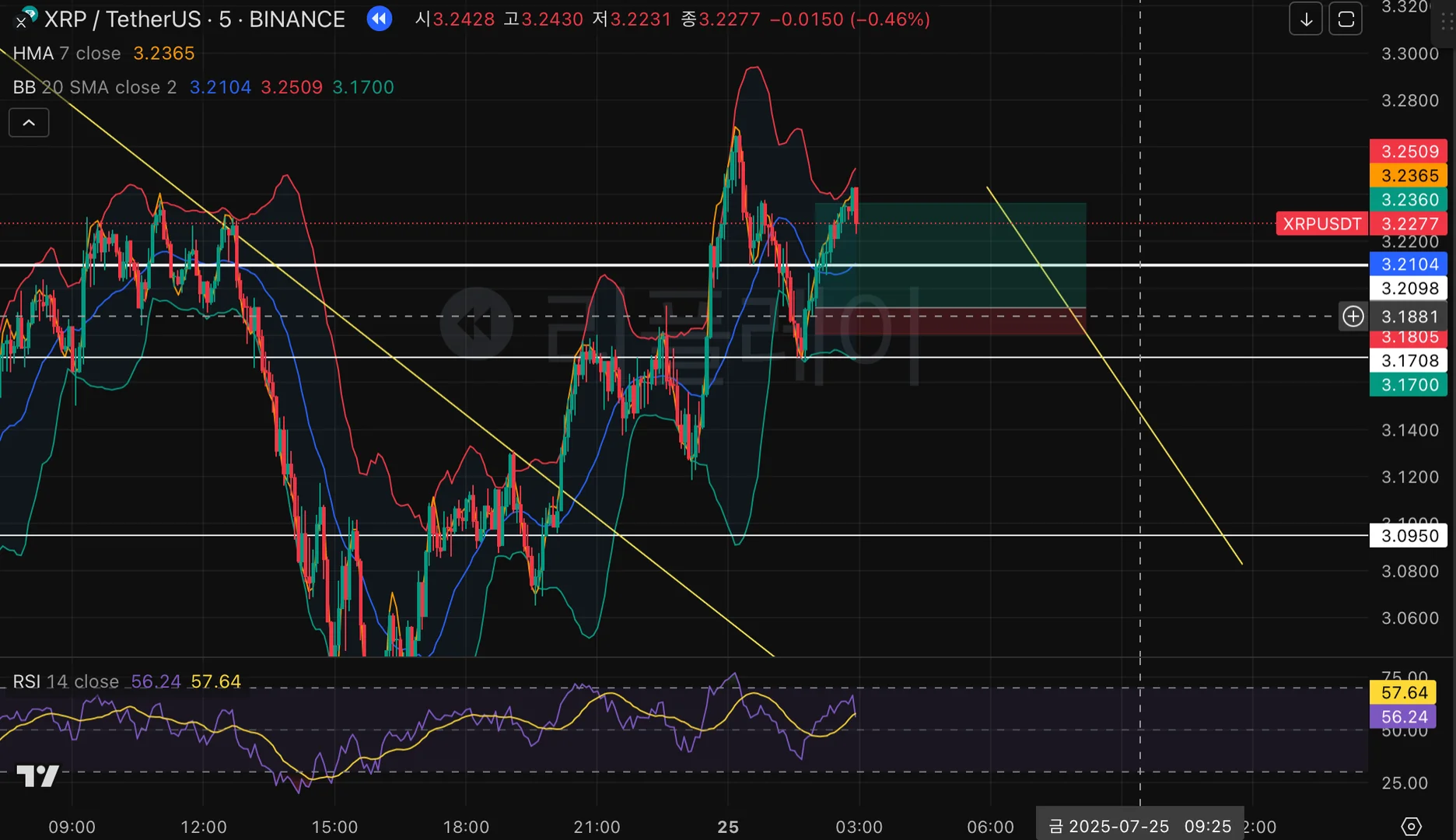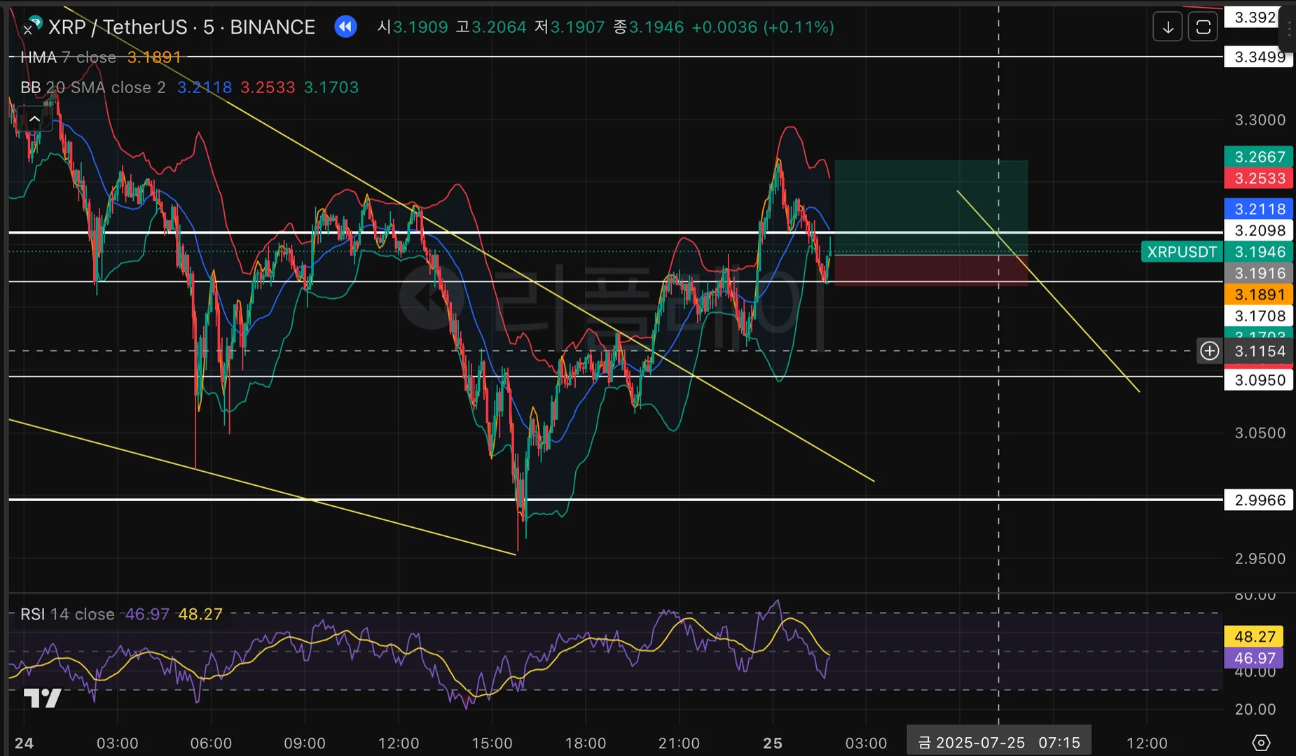 추세 기반 매매를 해보기 위해서 고점과 저점이 꾸준히 높아지는 중이니 상방이 유리하겠다고 판단했고, 저점에서 양봉 컨펌이 두개가 나왔으니 상승할 것이라고 판단했습니다.