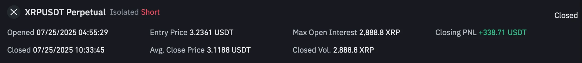 이전 수익인증에 이어서 리플 5배 레버리지로 숏베팅 수익인증입니다.