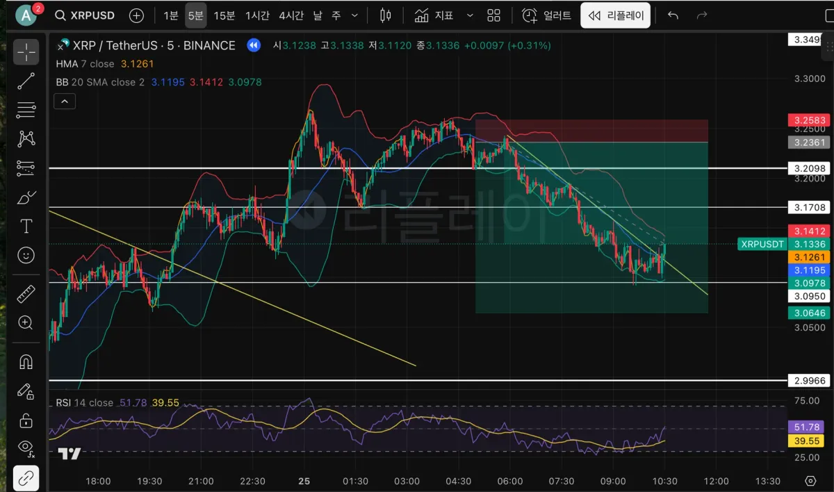 이전 수익인증에 이어서 리플 5배 레버리지로 숏베팅 수익인증입니다.