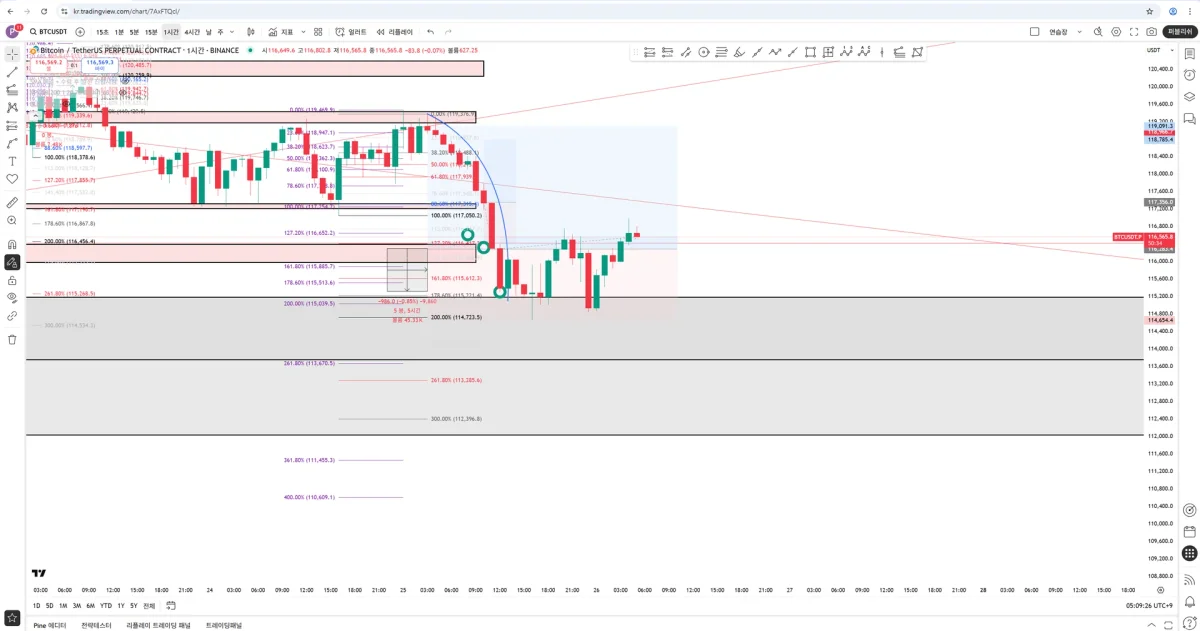 - 피보나치 되돌림 확장 구간 200%까지 고려한건가..