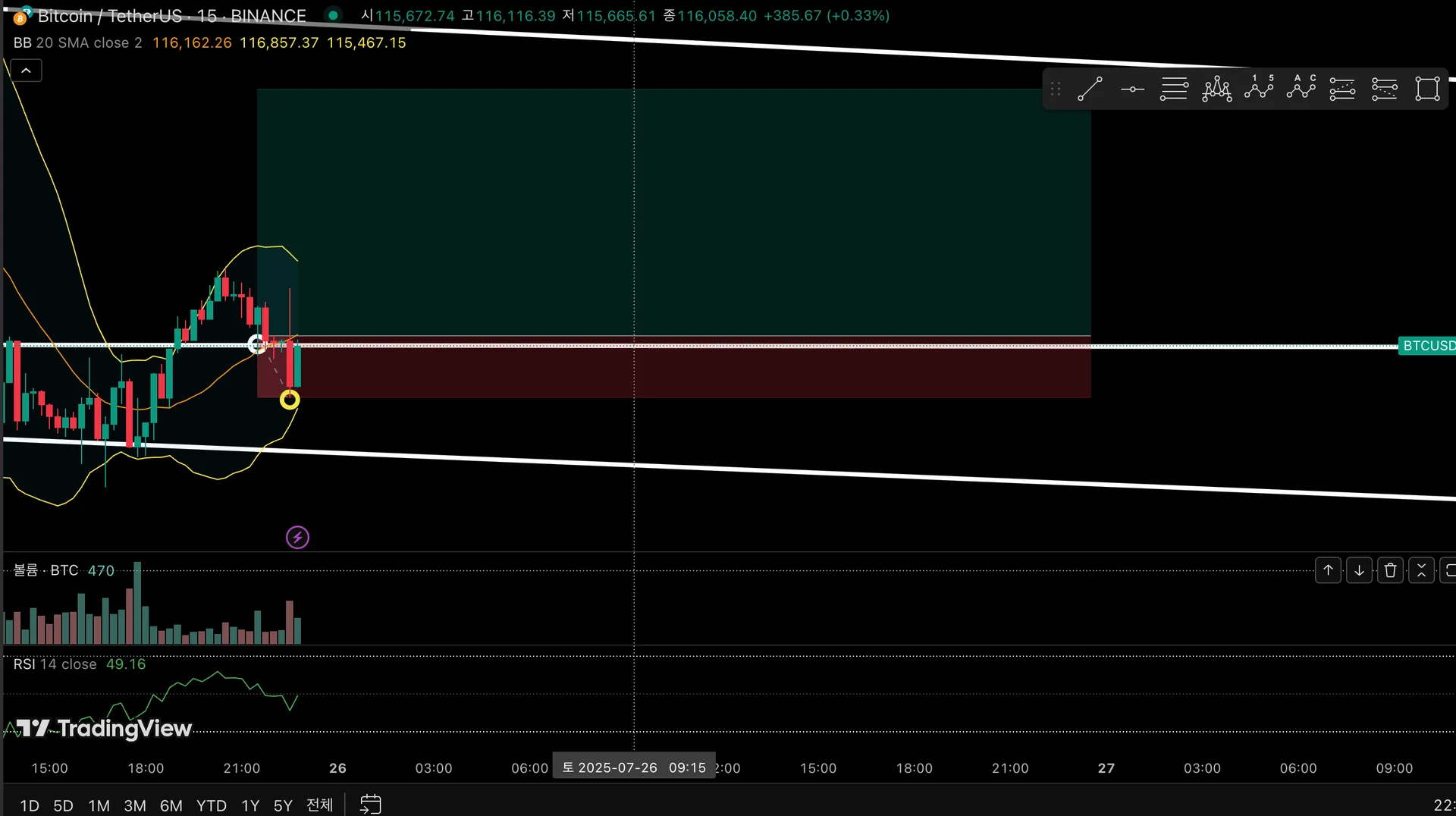 - 15분봉 기준 하락 지지선 반등 확인 후 진입