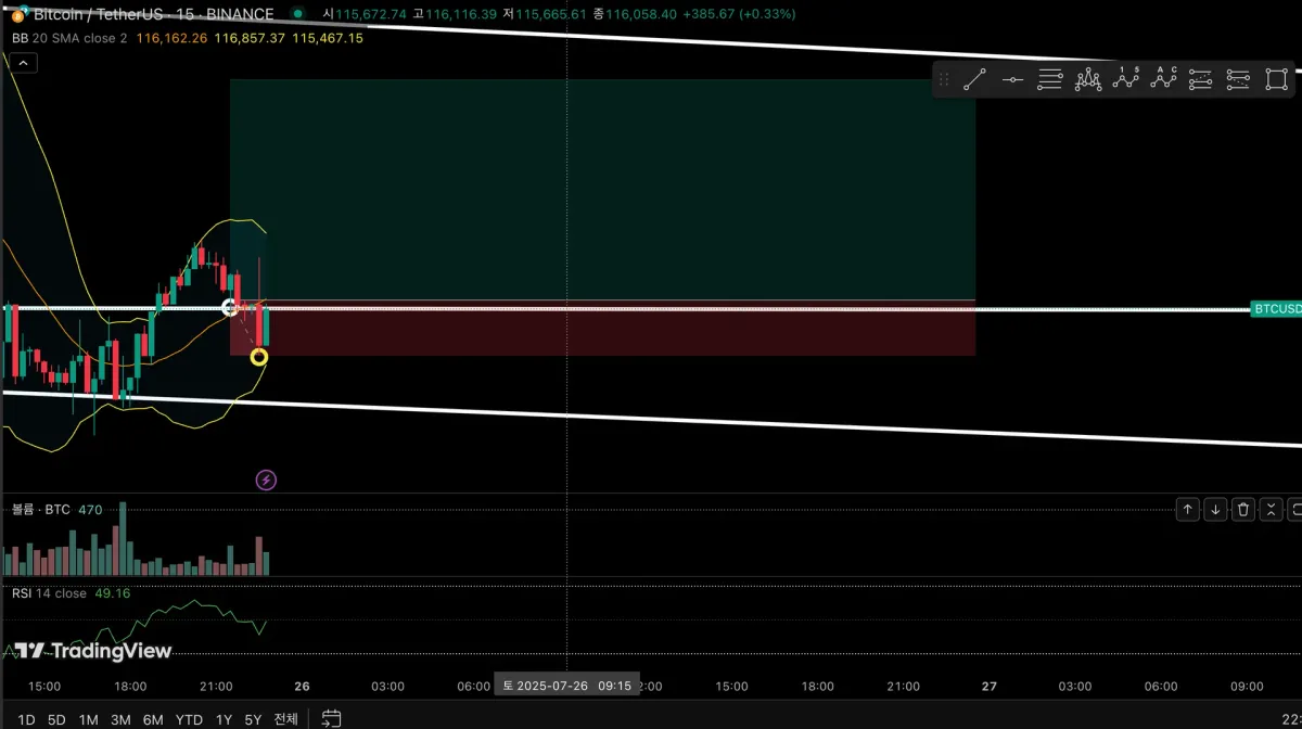 - 15분봉 기준 하락 지지선 반등 확인 후 진입