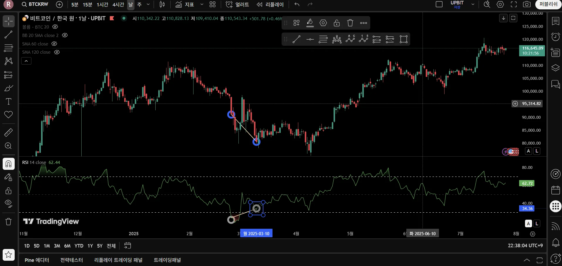 [30일 챌린지 11기 2주차] RSI 다이버전스 나온 구간 체크하기