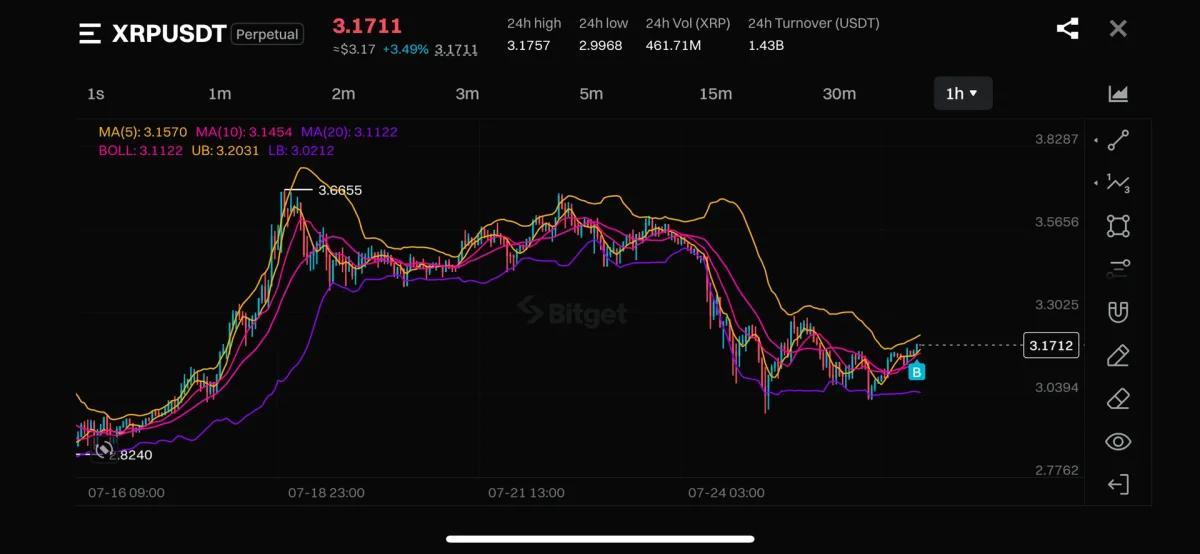 큰 주기 부터 보라고 하셨던 말씀을 기억해 1일봉부타 4시간봉 1시간봉 주기로 저점을확인 다른 보조지표 지지 저항 찾는거에 아직 미숙하기에 보조지표로는 볼린저밴드만사용하였습니다 1일봉 4시간봉기준 볼린저밴드 하단에 위치하면서 중간지점을 뚫고 상승을 파악 1시간봉 2개의 저점을 지지로 파악하여 조금 늦은 진입이라고 생각하지만 괜찮은 손익비가 나올거 같다고 판단하여 1시간봉 볼린저밴드 중단을 돌파하고 난 후 진입하였습니다 손절라인은 20퍼가 떨어지는 지점으로 두었고 큰 상승이 나올거같다 판단하여 익절구간은 아직 정하지 않고 홀딩중입니다. 아직 미숙한 거래이기 때문에 큰금액 진입하지않고 시드에 10퍼 센트만 진입하였습니다 좋은 의견 남겨주시면 감사하겠습니다!