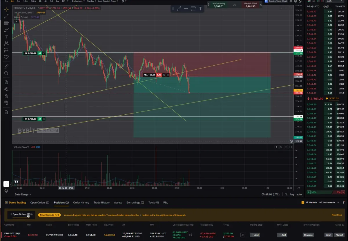 TP/SL을 설정해 놓았음
