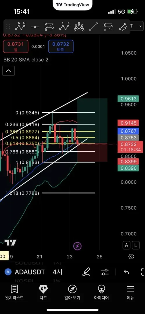 4시간봉 지지선 하단 볼밴 중단
