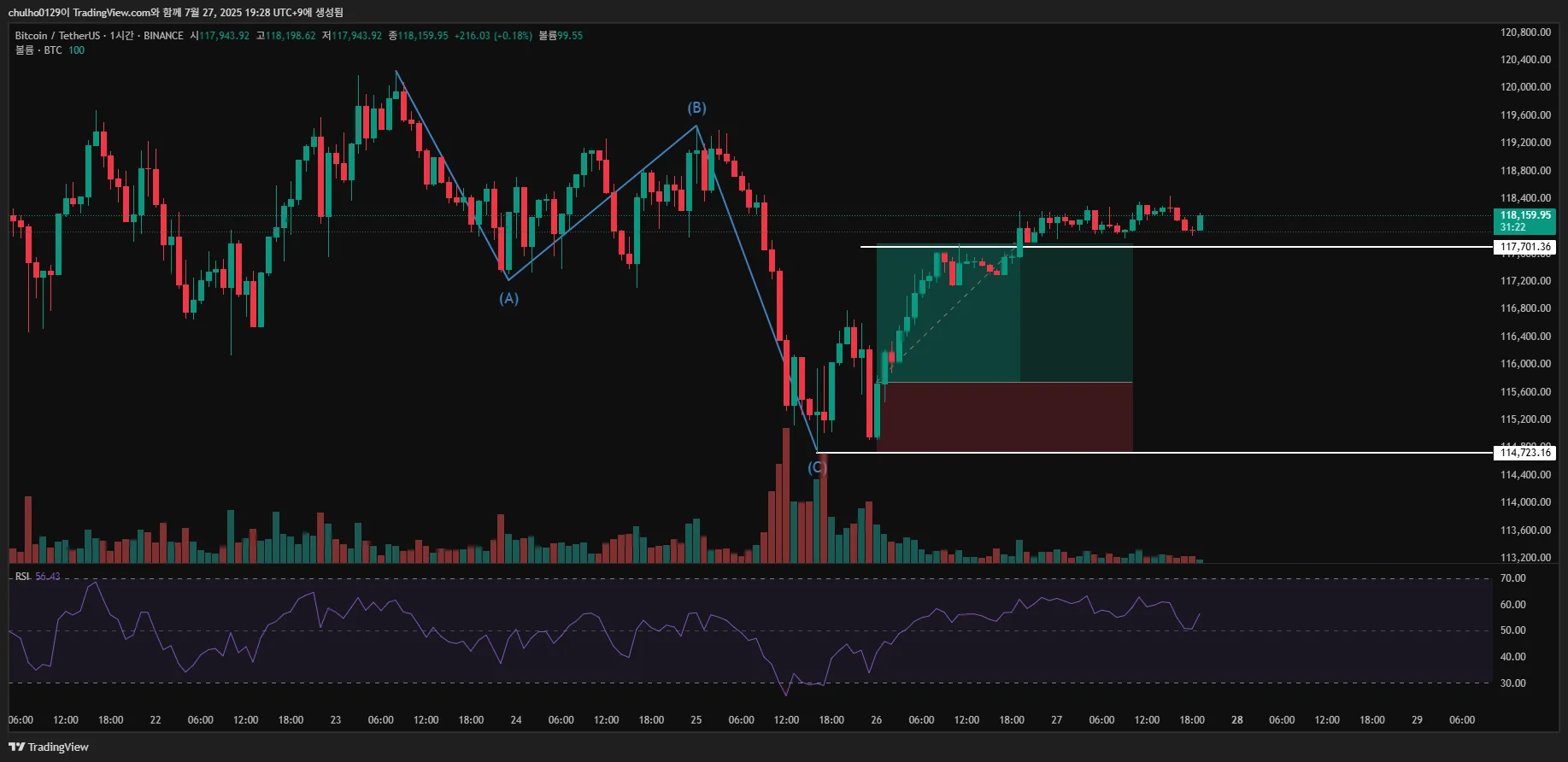 ABC 조정후 더블바텀 + 상승 다이버전스도 나온것 같아서 진입 해 보았습니다.