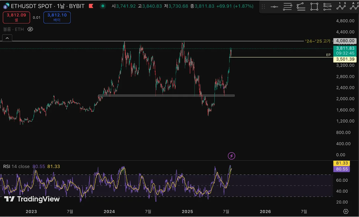 최종 수익 실현 목표는 4000대이긴 하나, 3800달러 즈음에서 추가 매도 진행하려 하며