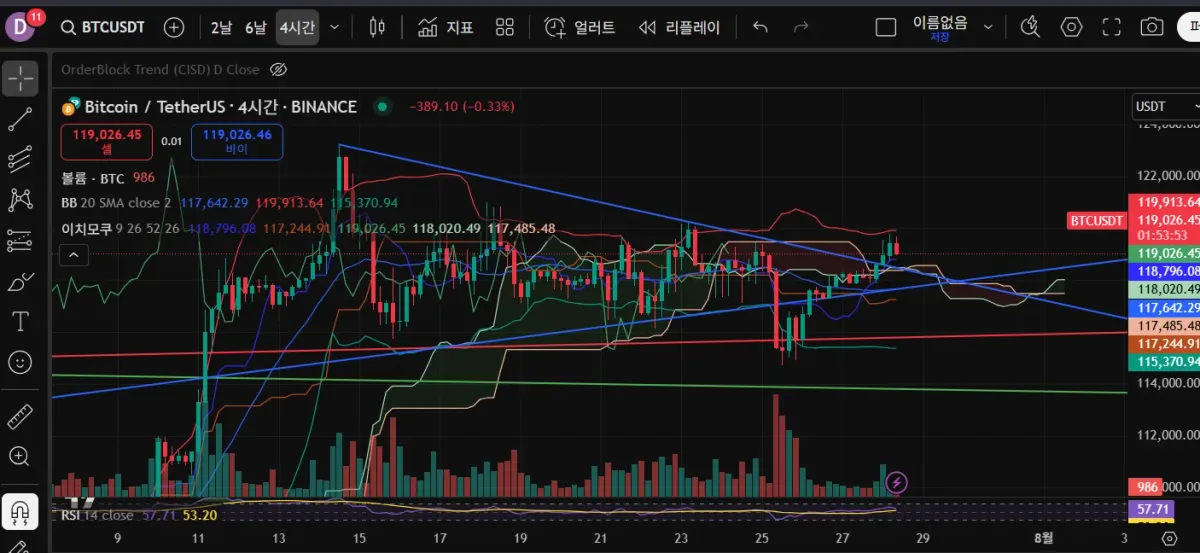 이후 다음 하프채널 or 다음 채널 상단까지 분할익절 예정입니다.