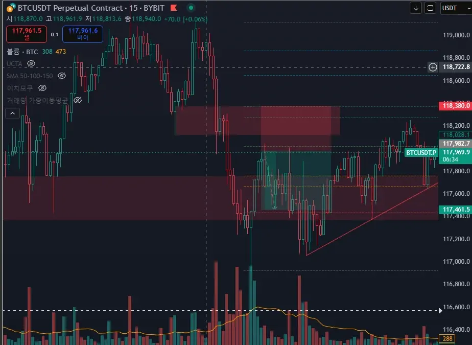 저점을 갱신하고 되돌림에 저항구간에 도달하여 숏포지션 진입하였습니다