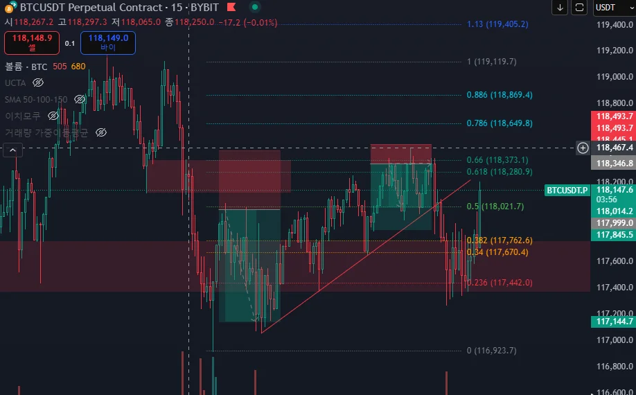 최초 진입은 저점 갱신 이후 반등한 117,819.5 부근