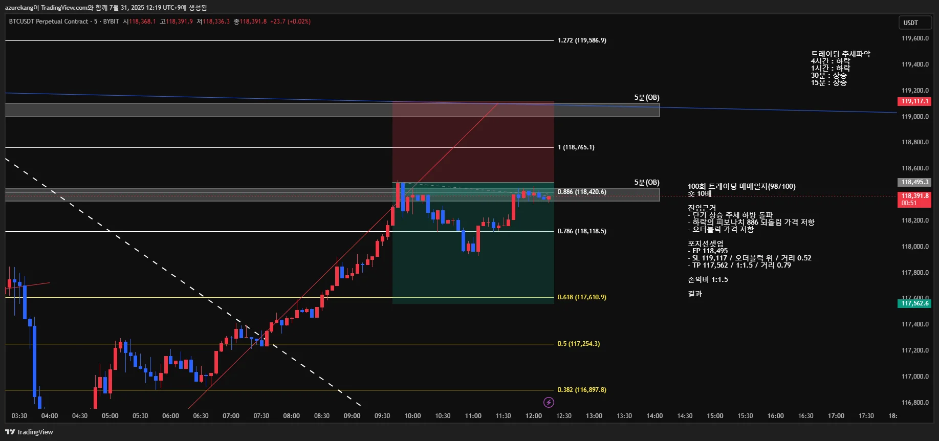 - SL 119,117 / 오더블럭 위 / 거리 0.52
