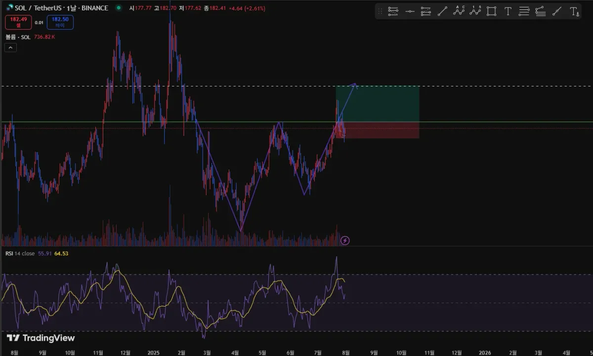 - 피보나치 1.618을 익절가 / 일봉 기준 넥라인이 깨지는 175.55에 손절가 설정.