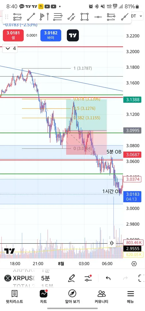 피보나치 618에 익절라인 걸어두고 잤는데...