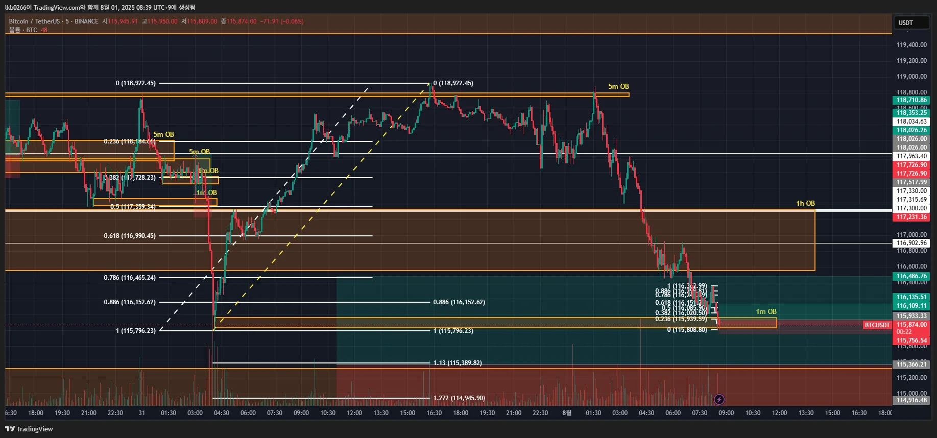-저점이 깨지면 0.886 OB 부근에서 새로 잡고자 함.