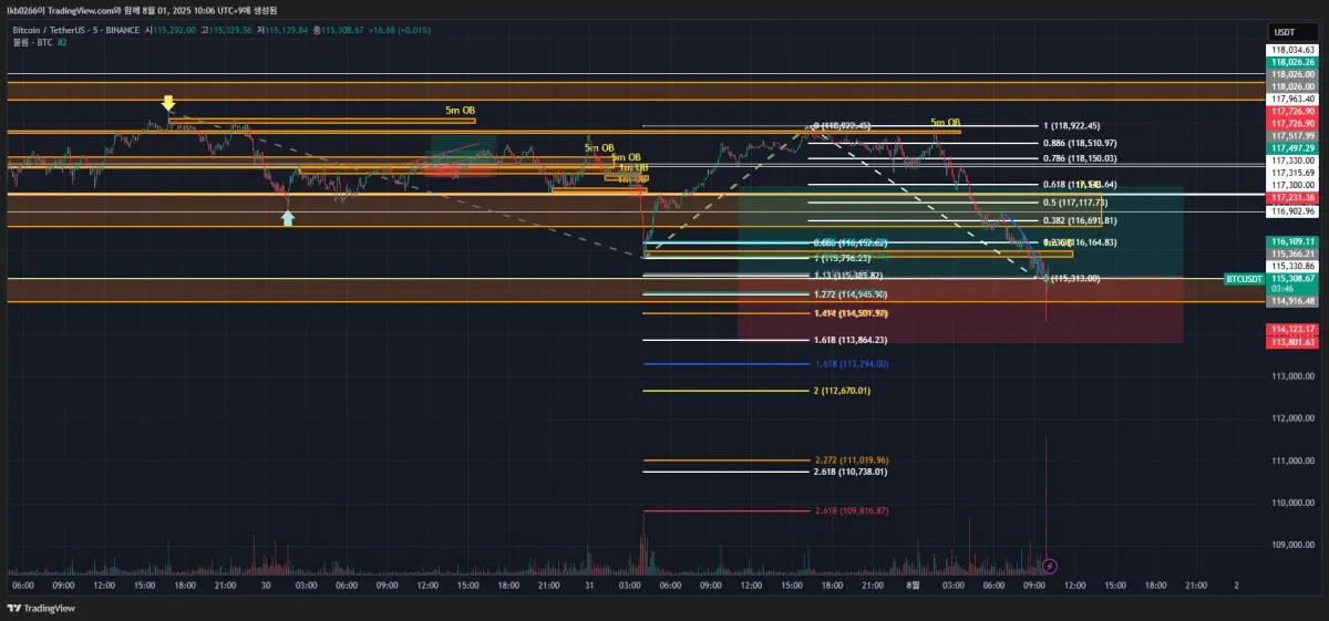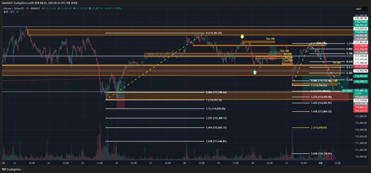 복기: 매도의 힘이 너무 쌔서 1m OB까지 반등 후 다시 떨어지길래.. 1.414 부근까지 내렸었는데 매도가 딱 나오며 스탑 시키며 반등을 하였네요. 길게 확장 겂으로 1.618자리까지 봤어야할지, 역추세 짧은 반등만 먹어야할지 한 번 다시 생각해보겠습니다.