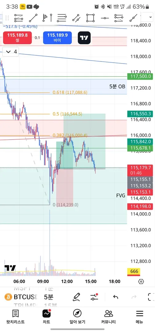 2) 익절(TP): 1차 115842 2차 116550