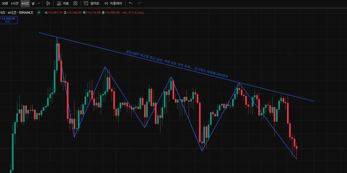 BTCUSDT 4시간 차트로 확인 시