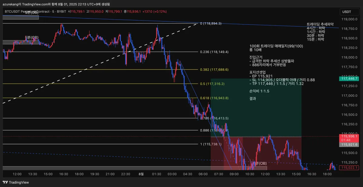 - SL 114,905 / 오더블럭 아래 / 거리 0.88